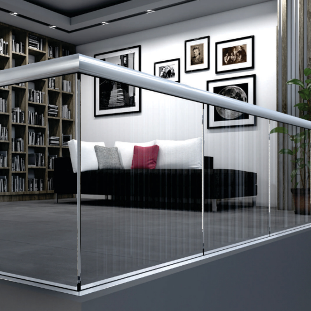 RA-08 C is based on the Conceal Aluminium Continue Profile System for holding glass. This system is providing Crystal View and Premium Look.